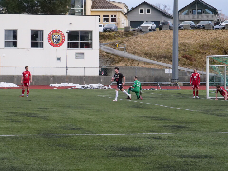 Etter minnesmarkeringen var kampen i gang. Allerede etter 12 minutter lå ballen i nota for hjemmelaget etter at spiller nummer 7 Enrique Crespo Søvik headet ballen i mål. Dessverre for Bergsøy hadde linjemannen oppe flagget og målet ble annullert for offside. Det skulle derimot ikke ta lang tid før Søvik fikk scoringen sin. Fire minutter etter den annullerte scoringen kombinerte midtbanespiller Kjetil Steinsvik Paulsen og venstreving Sander Mäkiperä Vike fint på venstre flanke før Vike la et presist innlegg som Søvik styrte fint inn i mål. 1-0 hjemmelaget.