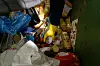 Fra søppeldunken plukker de opp mye forskjellig. Fine tulipanbuketter, to-tre flasker med flytende margarin, og frukt og grønt med skjønnhetsflekker. De fyller opp fire plastikkposer med alt de finner i søppelet.