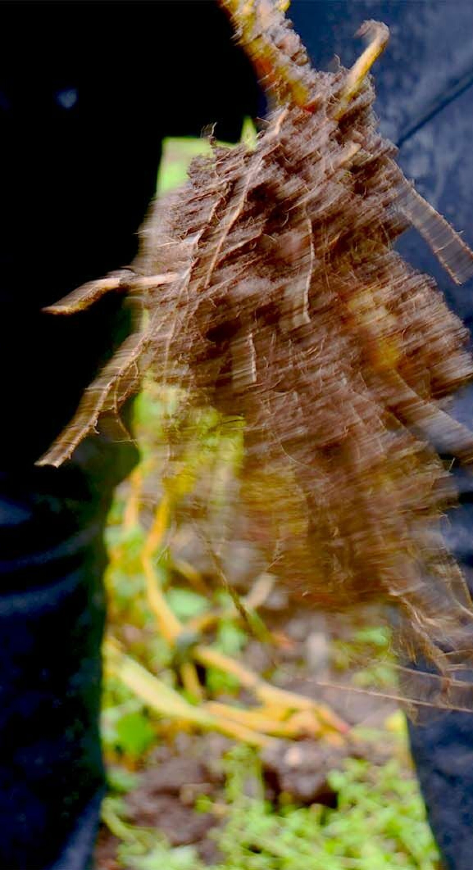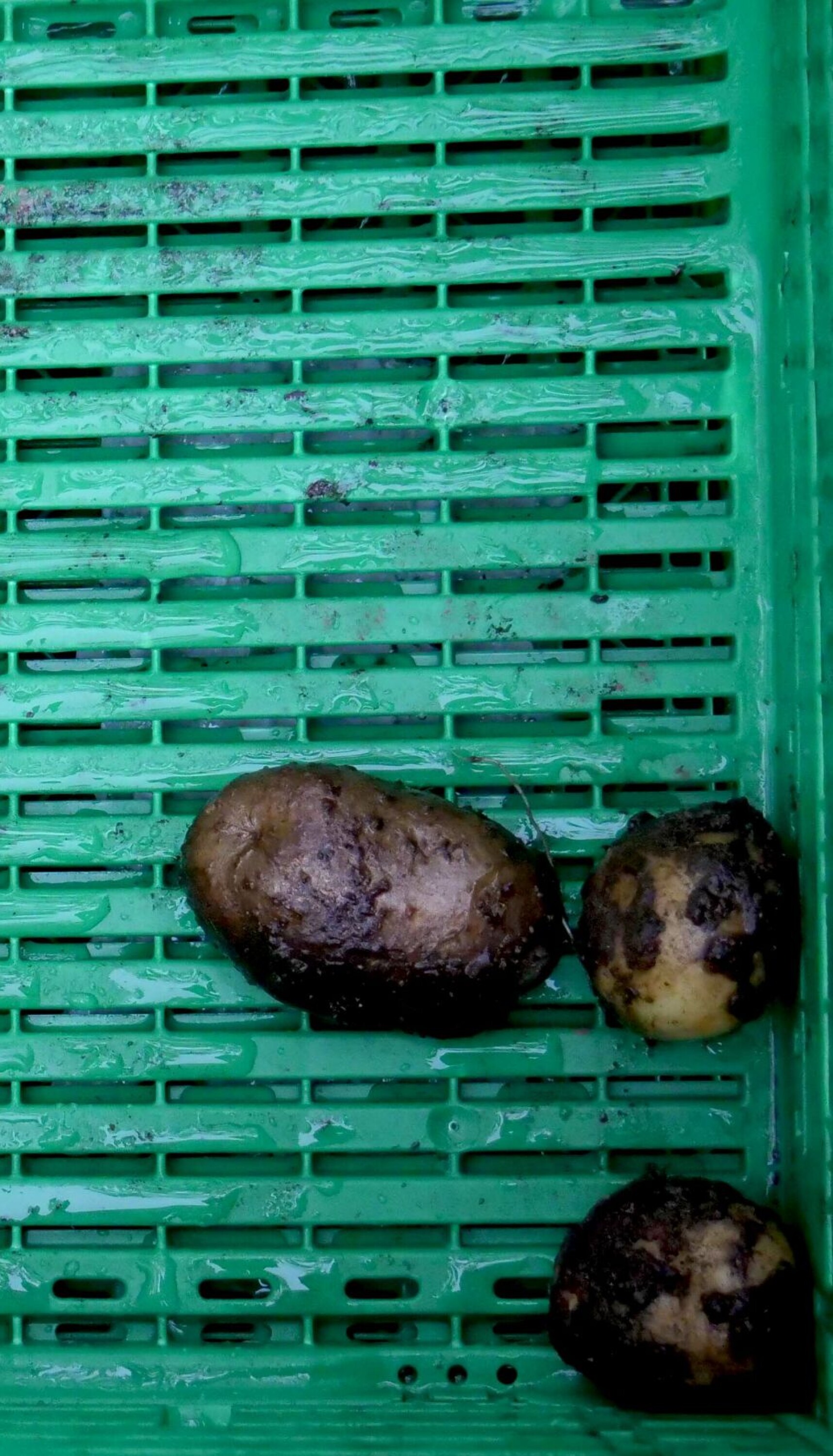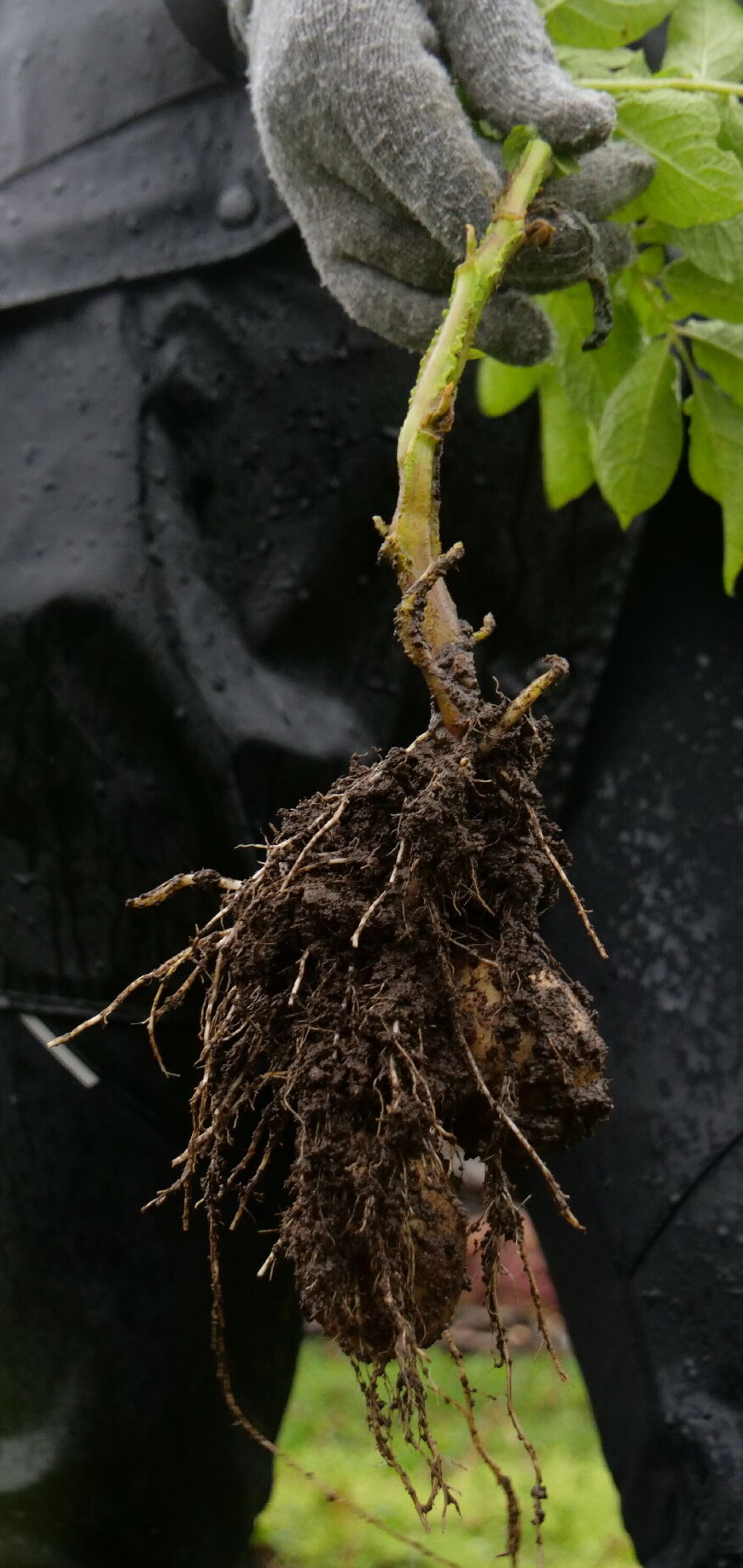 I bekmørket, godt inntullet av den fuktige jorda, vokser de små næringskildene frem. På Myrvang gård bruker de nesten fem måneder på å kravle seg oppover. Sakte, men sikkert, brøyter de vei mot jordskorpa. Over bakken har poteten fått en sveis i form av en grønn plante - enkelt for mennesket å røske tak i og rive poteten løs fra jordteppet den lenge har gjemt seg under.