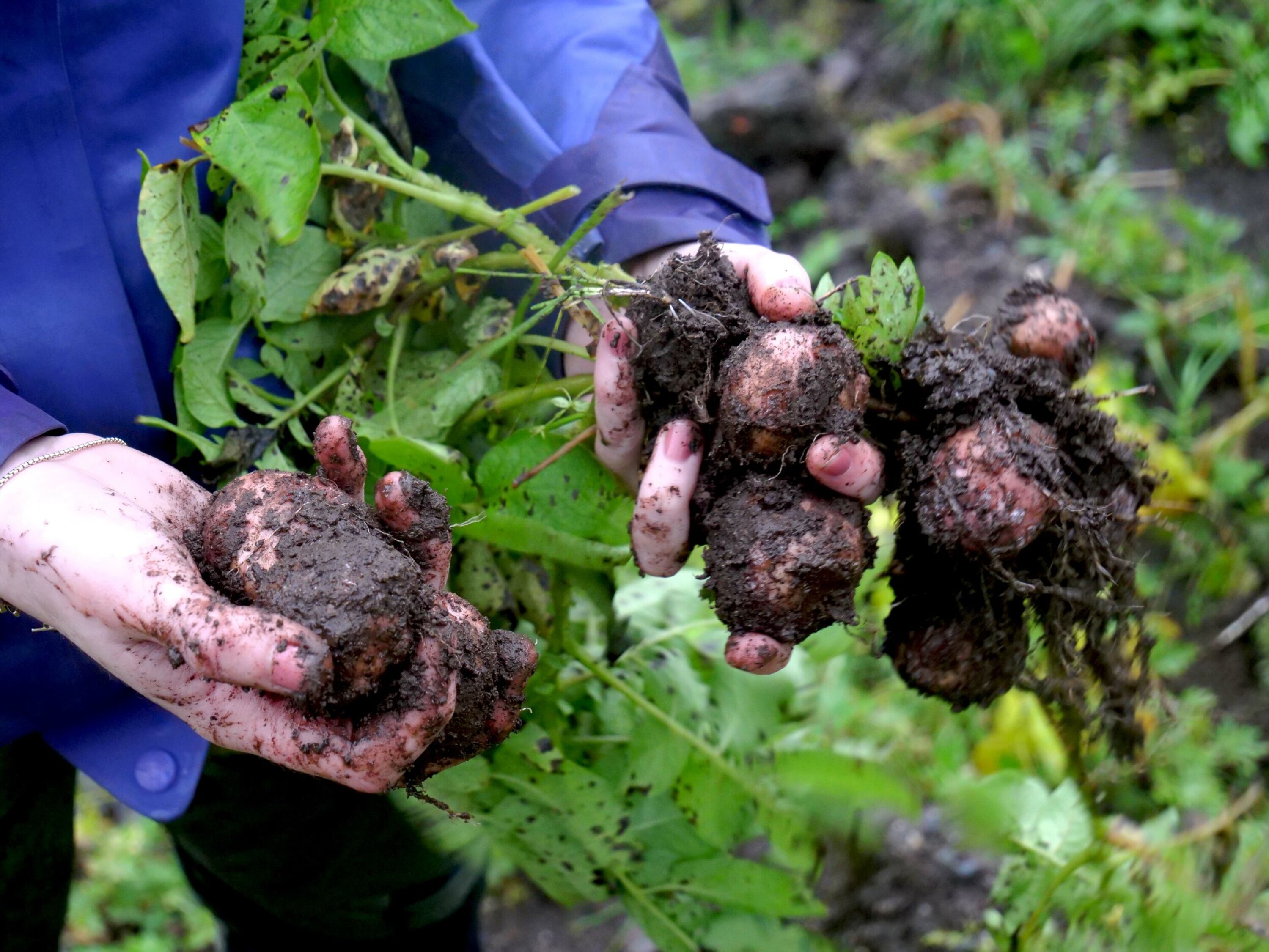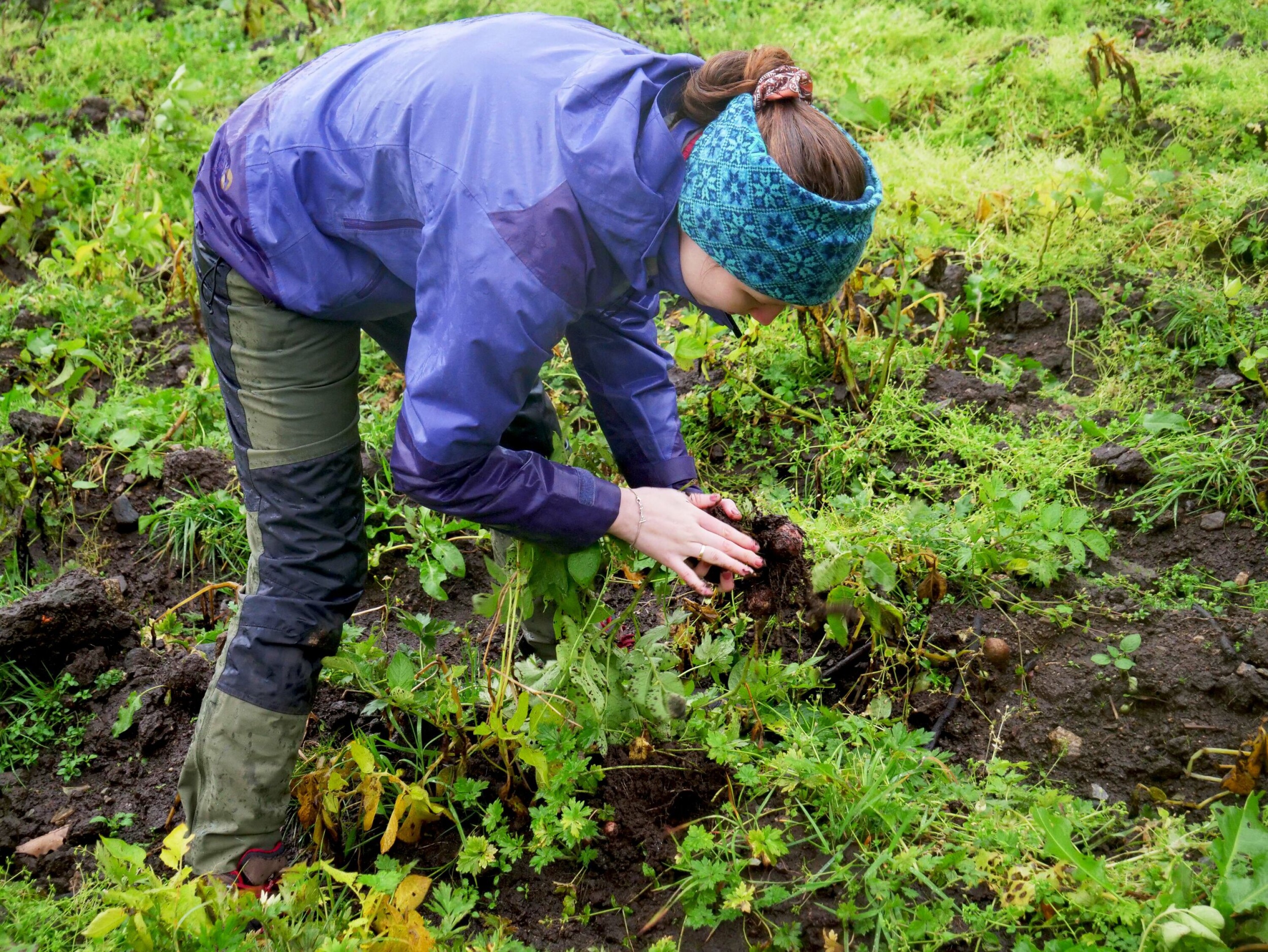 Potetene på Myrvang gård får et røft møte med dagslyset: Det regner sidelengs og en liten gjeng grådige studenter river frustrert i røttene.
