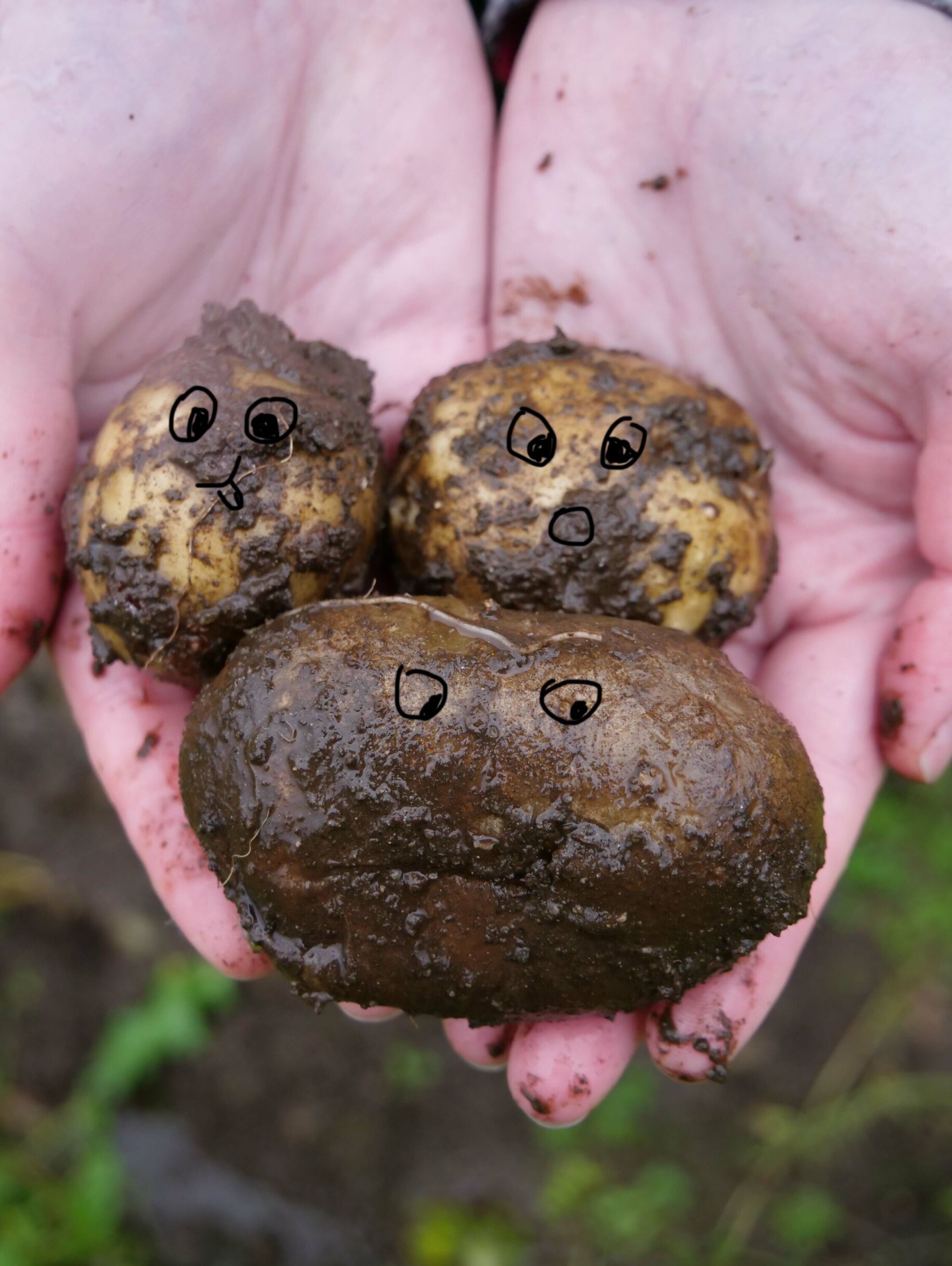 De grønne kassene fylles opp kilovis, og de underjordiske stengelknollene er brått overjordiske. Nærnett forlater Pål, Petra og Paula liggende tett i tett med sine overjordiske venner. Ikke vet vi om de blir kokt, stekt, most, fritert - eller - laga lefse ut av. Uansett, har de nå, som for 300 år siden, stor nytterverdi for oss jordboere.