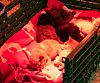 Akkurat nå har de en liten haug, bokstavelig talt, med kattunger. Mest sannsynlig tre uker gamle, sier Aina. De lukter melk og mjauer høyt, men med én gang de får ligge inntil brystet, inni regnjakka, sovner de.