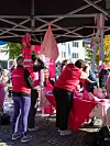 Blant dei som bidrog til å skape liv på plassen var også Sparebanken Møre, som har vore ein av hovudsponsorane for løpet. Banken stilte med både frivillige og premiar, og synte at dei tek lokalt engasjement på alvor.